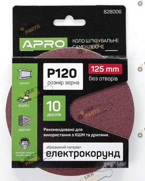 Шлифовальный круг Apro На липучке 10 шт d125 p150