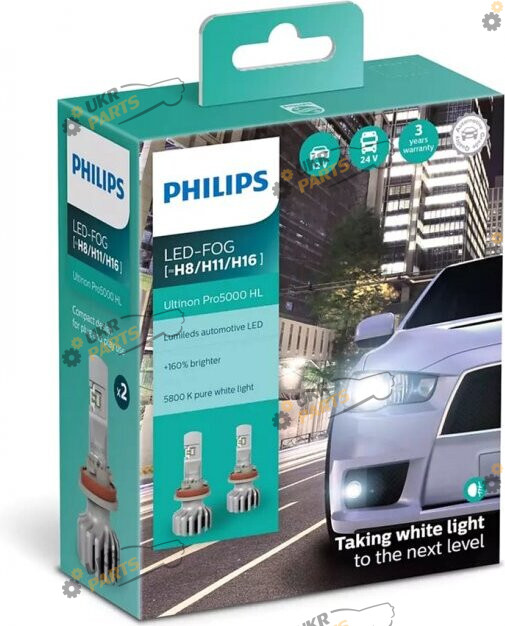 LED лампа Philips LED H11 113622U51 12/24V Ultinon Pro5100 +160% X2 (шт.) H11 12 Вт