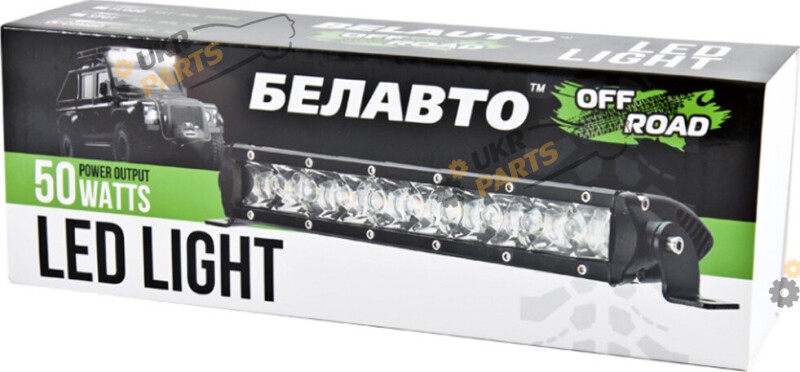 В данной модели 10 диодов , компании GREE, которая является лидером в производстве полупроводниковых светодиодов. Они размещены в одну линию. В модулях металлический граненный отражатель, с помощью которого луч становится рассеянным. Мощность одного диода 5 Вт, что в сумме дает мощность фары 50 Вт. Цвет света яркий белый с холодным оттенком, и со световым потоком 4000 Лм.