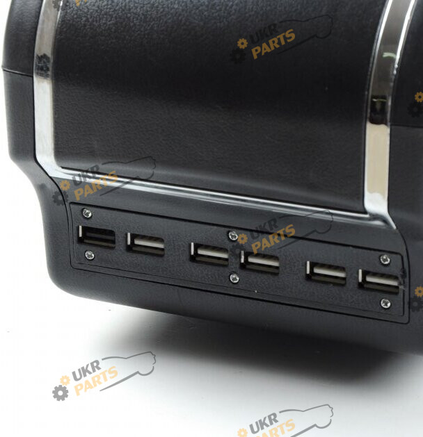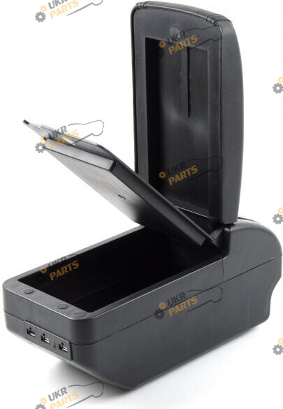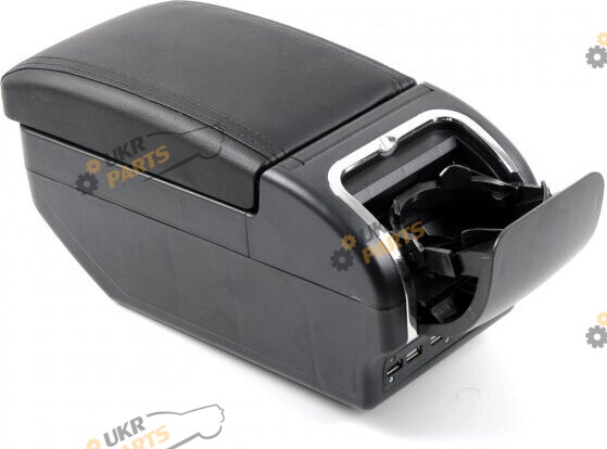 Внутри два отсека - большой для телефона и других больших вещей , сверху маленький - для документов и т.п.(Оба отсека на магнитах.). Сзади 6 USB порта для задних пассажиров. Сзади подлокотника также есть подстаканник и пепельница. Возможность регулировки подлокотника в 6-ти позициях. Установка в штатное место без доработки.