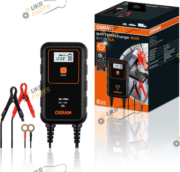 OSRAM BatteryCharger 906 - интеллектуальное зарядное устройство на 6A для транспортных средств 6В и 12В, включая большинство небольших легковых автомобилей и минивэнов. Одним нажатием кнопки включается 7-ступенчатый цикл зарядки для литиевых аккумуляторов и 9-ступенчатый цикл зарядки свинцово-кислотных/AGM аккумуляторов. Подключите зарядное устройство и будьте уверены, что оно позаботится о работоспособности вашего автомобильного аккумулятора, режим долгосрочного обслуживания включается автоматически, когда аккумулятор полностью заряжен. Цифровой дисплей значительно упрощает процесс работы с устройством, а множество систем безопасности защищают от обратной полярности и короткого замыкания.
